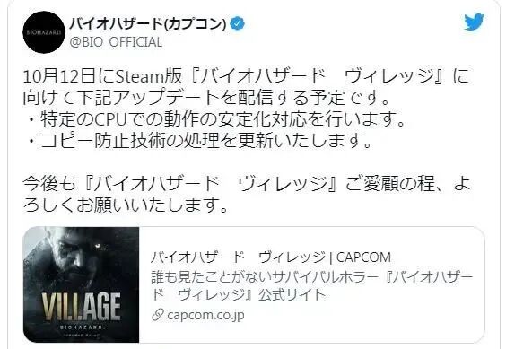 根据卡普空官方发布的推特可以知道,本次最新更新的内容包括特定CPU的动作稳定化对应”和“防止copy技术的处理更新”。
