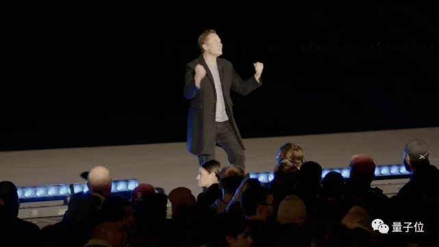 在视频结束后,视频播放屏幕逐渐落下,马斯克重新出现在台上,说道: