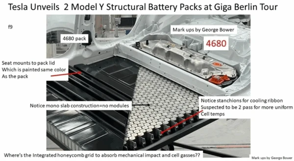 2月10日消息,据海外知名电动车媒体InsideEVs报道,通过对特斯拉即将量产的4680电池技术的研究,根据新曝光的特斯拉电池专利文件和柏林、德州两座新工厂的实拍图,发现了搭载电池包的 Model Y 的车身底部是镂空的,电池包充当了车身底板,甚至车辆的座椅就直接安装在电池包的外壳上,车辆的底盘即也是电池包。(驱动之家)