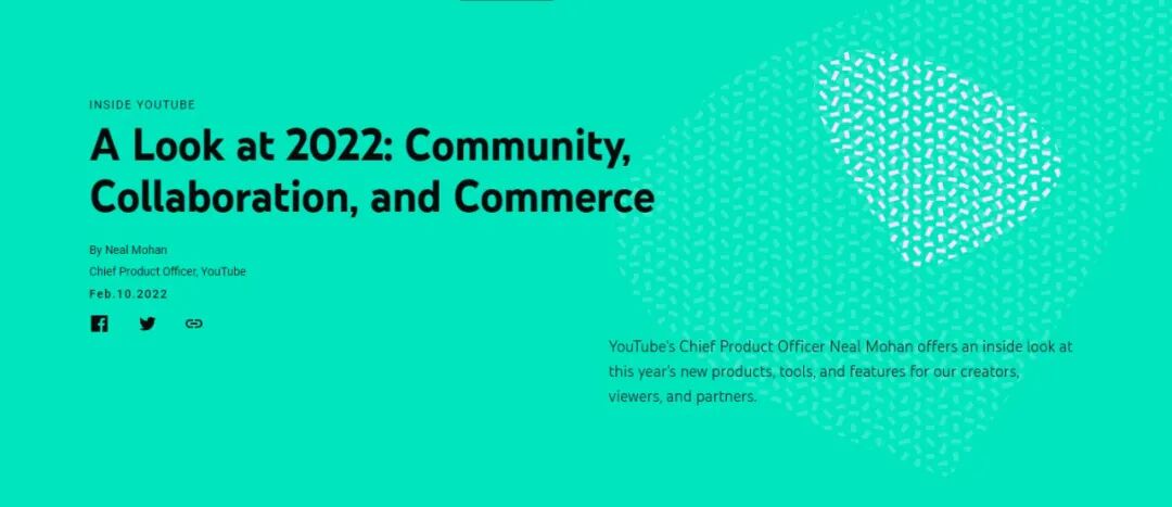 当地时间2月10日,视频平台YouTube的首席产品官Neal Mohan在其官方博客上发布了名为《展望2022:社区、协作和商业》的公告,其中详细阐述了该公司2022年在NFT与元宇宙方面的发展计划。