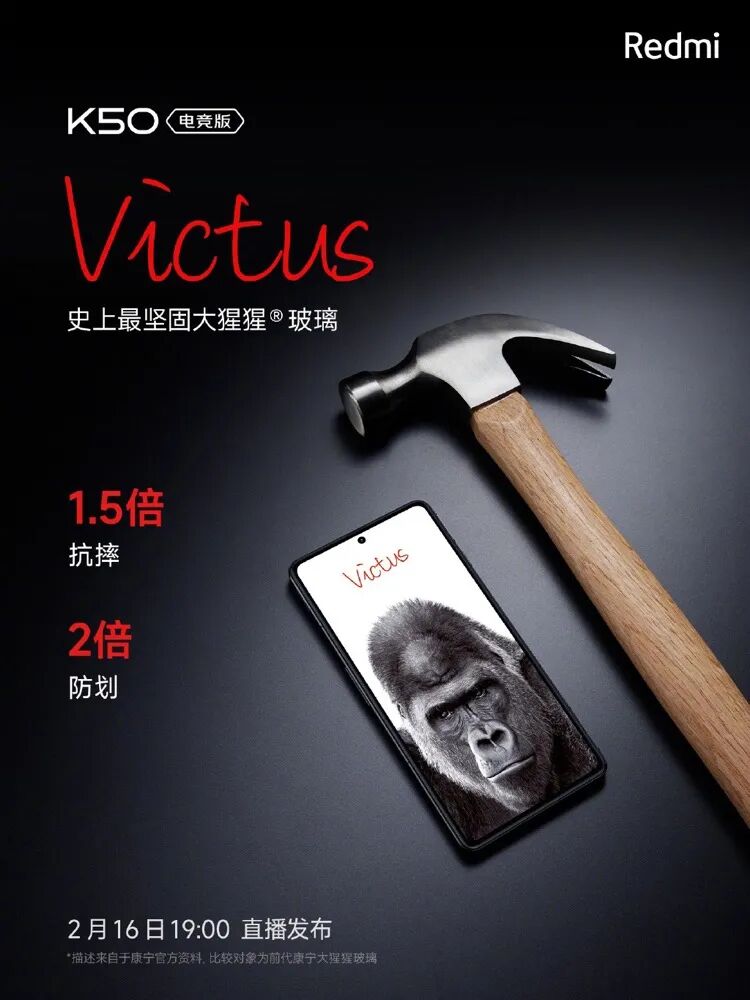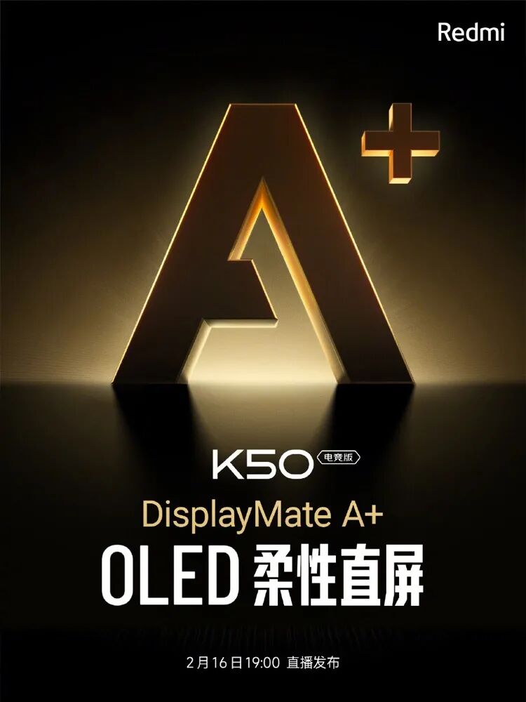 按照官方给出的信息,这次发布活动中将首先到来Redmi K50电竞版,而标准版和天玑版等还在打磨中,会稍晚出场。在经过了对新机外观设计的爆料后,Redmi官方于今天公布了Redmi K50电竞版的正面屏幕细节。官方剧透显示,Redmi K50电竞版配备了一块OLED柔性直屏,并获得国际权威画质认证DisplayMate A+,一次达成 15 项画质纪录。15项 DisplayMate A+ 评价显示,其拥有最高对比度、最低屏幕反射率、最小视角亮度变化、最大的屏幕原生色域、最优的白色颜色准确度、最优的绝对颜色准确度、最高的OLED 智能手机全屏亮度。据悉,这款屏幕为电竞场景进行了5 项体验升级;配备“原色屏”专业色准技术,通过逐片调校,达成专业显示器般的精准色彩。Redmi K50电竞版覆盖Victus 大猩猩玻璃,官方称其为康宁有史以来最坚固的大猩猩玻璃,抗摔提升 1.5 倍,通过 2 米跌落实验,防划提升 2 倍,4 倍于普通玻璃。这款新机还带来了 10倍超分辨率触控支持。将屏幕触控分区由 2400 x 1080提升至24000 x 10800,触控分辨率大幅提升。Redmi K50电竞版支持新一代 1920Hz PWM 高频调光。相较常规480Hz,调光频率提升3倍,既能保留暗光下的色彩准确,又能解决“低亮度频闪”伤眼问题。同时,来自博主@数码闲聊站 的爆料显示,“K50电竞版是华星光电的柔性直屏,也是DisplayMateA+的评级。知道你们不喜欢60Hz的DC调光,所以这次做的1920Hz高频PWM调光,可以120Hz满载使用”。可以看到,这款新机在屏幕支持部分进行了大幅度升级,实际的产品表现令人关注。此外,K50电竞版还搭载了弹出式肩键2.0,将提供磁动力的微型磁铁升级至 8 颗。实体的“硬肩键”成本更高、对结构设计更大挑战,但也能带来真实打击感、舒适键程、无延迟、清脆回弹。![]()