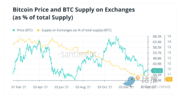 目前,比特币在交易所的累计供应量已降至 11.5%。六个月前,该交易所的供应比率为 13.2%。一年前,这一供应比例为 13.9%。