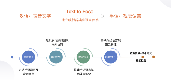 在大部分人看来,手语动作比较简单,不同的词汇有相对应的手势,其实真正可懂也很难。打个比方来说,我们学英语,需要打乱汉语语序,按照英语的方式来思考,才能熟练掌握这门语言。手语也类似,其语序结构、句子表达、特殊表情等都和汉语不同,有时一个句子中的词汇并不需要全都通过手语翻译,例如量词、副词等,但有时合理地删减也是一大难点。在调研过程中,研究人员发现,现在《新闻联播》《北京新闻》等很多栏目中都增设了手语播报,不过部分听障人士称,他们只能理解手语新闻中不到60%的内容。日常的新闻播报尚且如此,冬奥会这一特殊场景下,项目名称、技术动作等手语词汇翻译难度可想而知。为了让手语数字人适应冬奥会这一特殊场景,研究人员也费了很大功夫。孟凡博称,首先,他们需要训练手语系统应对比赛、采访现场嘈杂的环境音,前期,技术团队选取了大量赛事报道对手语数字人进行训练;其次,手语作为一门独立语言,其文本资源很少,研究团队通过多方搜集只能找到近160万有效文本。相比于中英对照的2亿文本,这个体量可以说很小了。更为重要的一点是,体育赛事有很多专业术语,手语数字人在确保信息全面、完整的基础上,也要保证数据的准确性,因此,腾讯AI交互技术团队和专业手语老师达成合作,迁移到手语数字人中的手语都经手语顾问反复确认。因此,面对专业的冬奥会,在文本不足的条件下,如何打造“真正可懂”的手语数字人正是腾讯AI交互技术团队需要跨越的技术壁垒。看到复杂的手语动作,我们可能一头雾水,但通过智东西和专业人士交流发现,手语表达语序与汉语大不相同。例如,在手语表达中,会先打出表达行为目的的词语,后打出表示行为的对象的词语,汉语“我想回家”的手语表达为“家回我想”。手语翻译过程中,不仅需要将每个词都进行一一对应,还需要调整其顺序便于听力障碍人士理解。因此,腾讯AI交互技术团队在汉语和手语之间建立映射词典和语言体系,将汉语翻译为符合自然手语规范和听力障碍人士表达习惯的手语。![]()