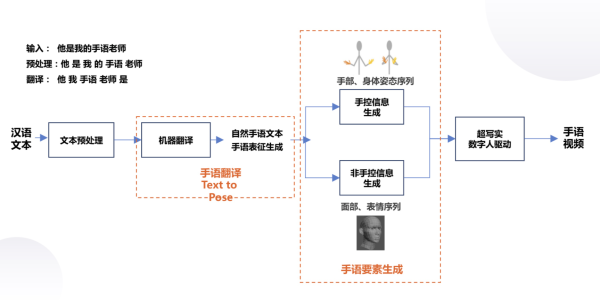 大家都能看到,手语数字人和其他数字人最大的区别在于不发声,仅仅依靠动作、表情等要素。不论是聆语还是小聪,其形象和手语动作都十分传神,那么在这背后有哪些黑科技?对于健听人而言,我们只需要声音、音调就能表达丰富的意思,而手语以表形表意为主,需要较大幅度的肢体动作、更加逼真的人物形象等,能和观众产生交流,更具真实感与亲切感,才能进一步使得手语翻译的完成度更高,在有效模拟真人手语播报的基础上,进一步提升用户体验。为此,腾讯手语数字人使用了行业领先的3D重光照扫描还原、面部肌肉驱动、表情肢体手势捕捉技术,打造了高度还原真人发肤、形象逼真、动作自然生动的数字人模型。大部分人可能不了解,学习手语其实和我们学习一门外语一样困难。手语是属于听障人士的独立语言,与汉语、英语等并列,有自己的语法结构、语序编排等规则,拥有独特的语言体系。和汉语类似,手语也分方言和普通话,为了让手语普及度进一步提高,我国于2019年还专门出版了《国家通用手语词典》,进一步对手语体系进行了规范。腾讯手语数字人的手语翻译系统,正是基于《国家通用手语词典》,形成了成熟的汉语到手语的语序转化和翻译过程。基于输入的健听人语言能够低延迟生成高准确率的手语语言表征,通过多模态生成技术,实时预测生成对应的超写实3D数字人驱动参数,进而快速生成数字人手语播报视频。![]()