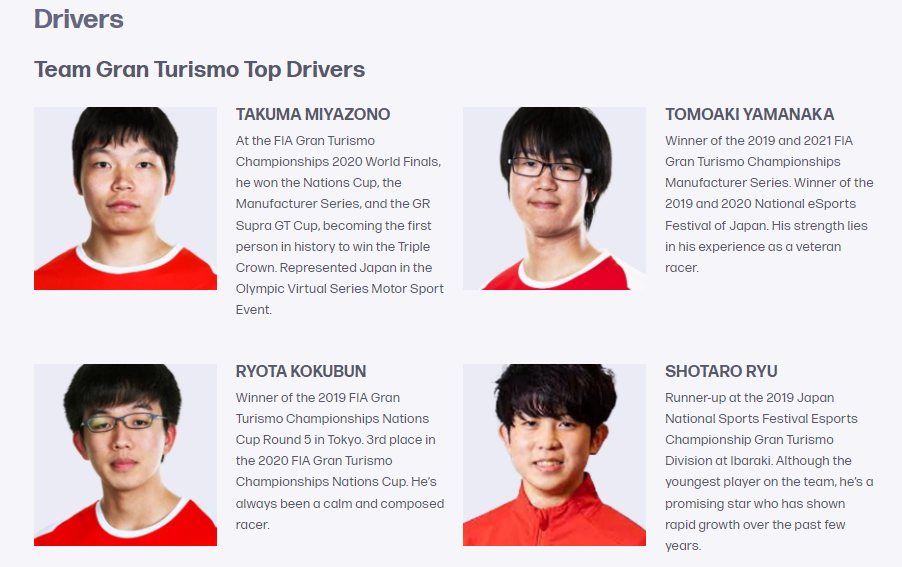 索尼邀请的四位人类车手,其中包括GT锦标赛三冠王宫园拓真