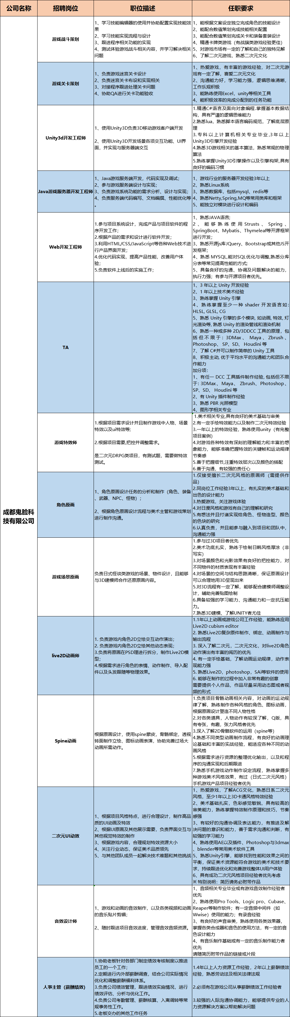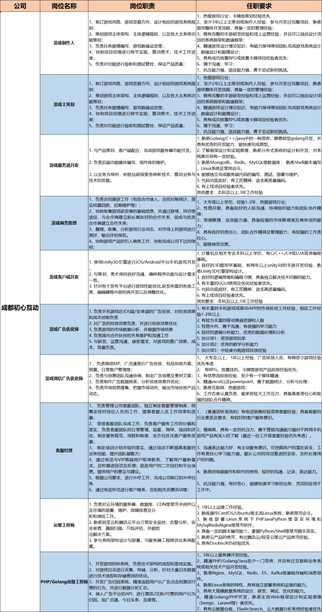 公司介绍:成都乐游同创是一家致力于海外休闲类精品游戏开发的创新型研发游戏企业,团队核心成员由前育碧,乐元素资深成员组成。团队有持续超过10年以上的海外精品休闲游戏开发经验,主打创新、精品类产品的研发与运营,有多支产品进入畅销榜前10产品,并多次获得苹果及谷歌全球推荐。目前公司已获得国内顶级资本投资,团队资金雄厚,福利多多。
