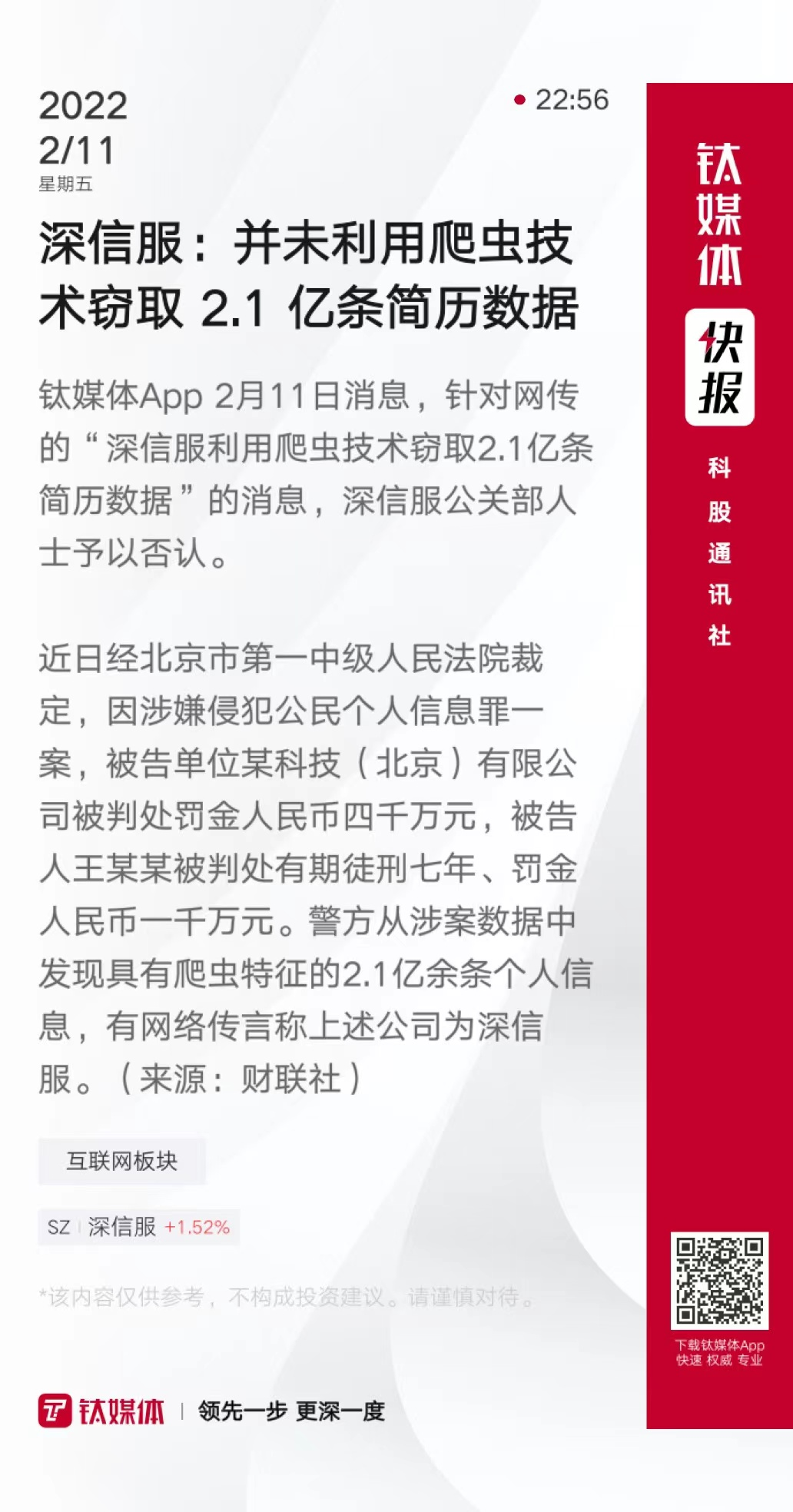 深信服:并未利用爬虫技术窃取 2.1 亿条简历数据