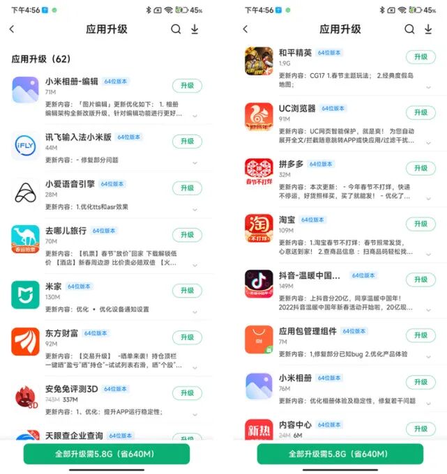 而就目前手机终端设备内置的官方应用商店也好,第三方应用市场也罢,华为、OPPO应用商店都不会直接标识出升级后的应用是否为64位,只有小米在应用商店会清晰地标识出哪款软件在升级时为64位。