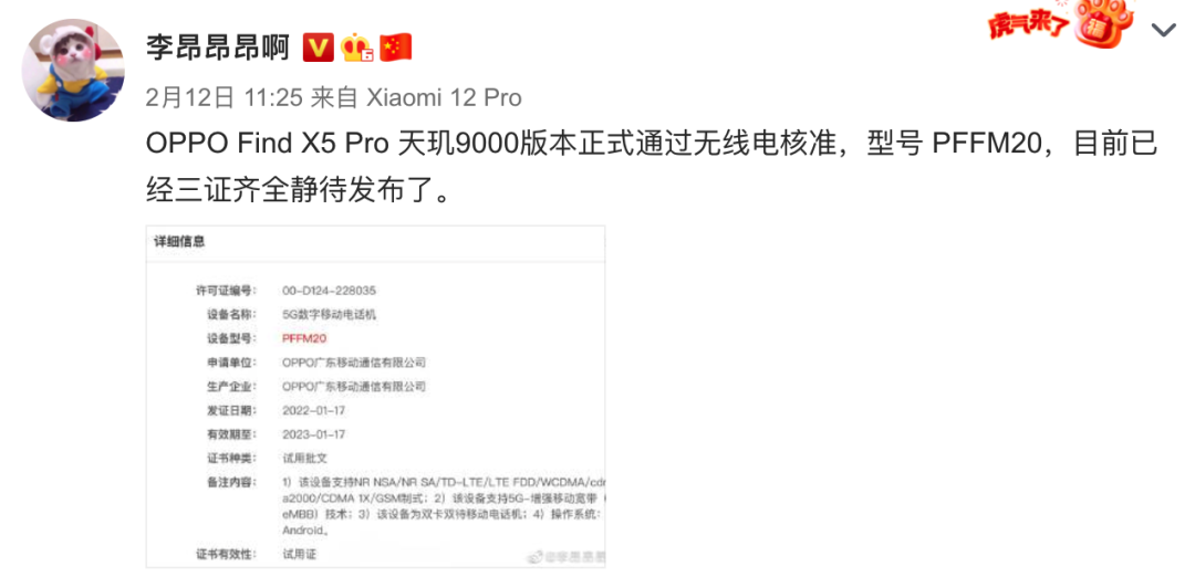 爆料丨曝OPPO Find X5 Pro 天玑9000版已三证齐全