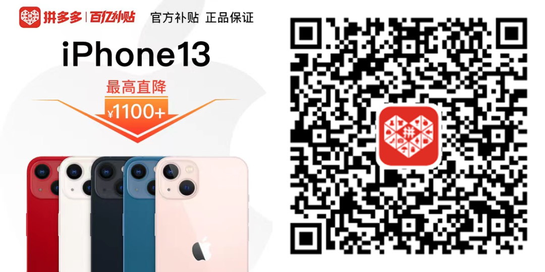 iPhone 13在性能和体验上还是一如既往的强悍,当然其他许多平台的价格也是居高不下。拼多多百亿补贴【iPhone 13】最高直降1100,还有官方正品保证,足足省下3个游戏钱,就问你香不香!长按识别下方二维码,或点击文末的“阅读原文”即可购买~![]()