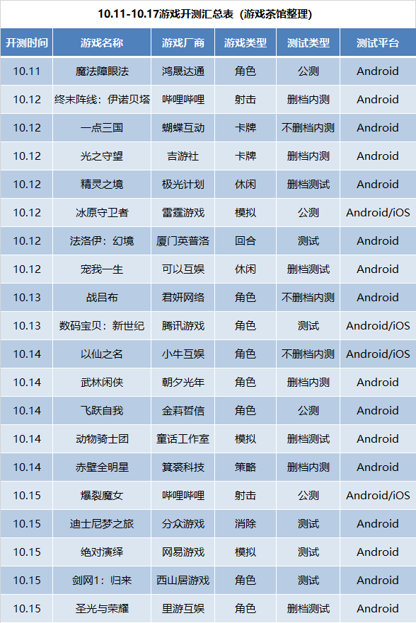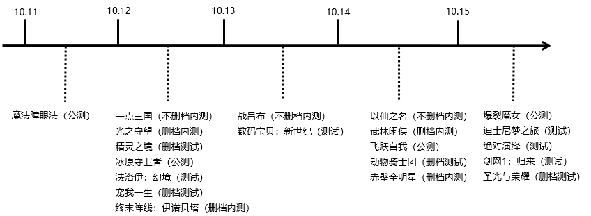 下周即将进行测试的大厂有哔哩哔哩、极光、雷霆、腾讯、朝夕光年、网易和西山居等。