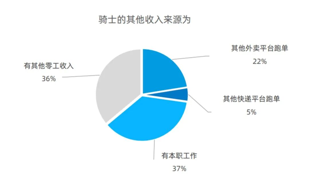 长久以来,外界不少人对外卖骑手的印象是月入过万。这并不是传说,行业刚刚兴起时,骑手人数不足,为了抢占市场,企业不惜高薪招募员工,并以红包、奖励、补贴等形式发放红利,每单的提成很高,收入自然可观。但那个时代已经远去,2021年,北京市人社局劳动关系处副处长王林拜师外卖小哥,体验了一天做外卖小哥的感觉,一单跑了近一个小时只挣了6块6,加上已经超时,还要被扣60%。当日王林工作了12个小时,最终只完成了5单送餐,仅获得了41块钱的收入,而他一天挣100块钱的目标连一半都没完成。排除他作为新人“手生”的因素,骑手配送提成降低有迹可循。近年来,由于行业门槛低,被吸引入进来的人过多,骑手不再短缺,因此失去了议价权,每单提成自然不如从前,再想实现月入过万,则需完成更多的订单,每天工作甚至要超过12个小时。据饿了么近日发布的《2022蓝骑士发展与保障报告》,平台超四成骑手为全职,近六成有其他收入的骑手中,近四成骑手有本职工作,另有近三成骑手在其他平台从事配送工作。近六成骑手有其他收入,
