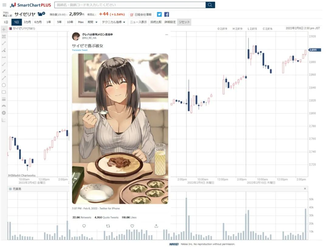 有的网友甚至发现,在“爱吃萨莉亚女友”事件发生之后,萨莉亚甚至还喜提一波股价上涨。