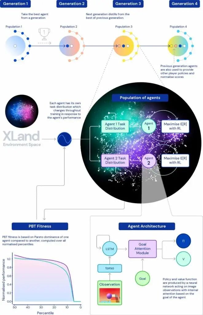 AI 研究人员写道:“此时,我们的代理已经能够参与每一个程序生成的评估任务,除了少数甚至对人类来说都是不可能的。” “而且我们看到的结果清楚地展示了整个任务空间的一般零样本行为。”