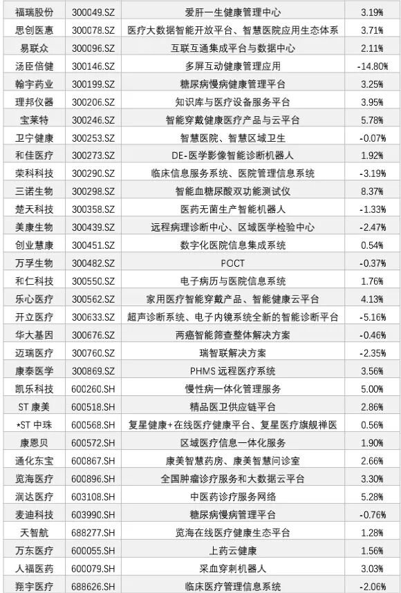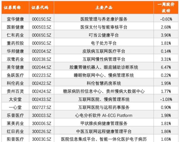 表2:部分医疗科技企业股价波动情况(2021/10/4—2021/0/10)