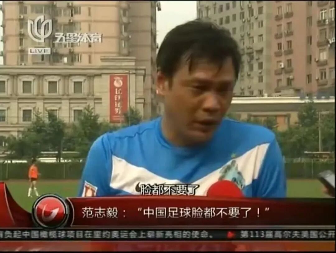 于是看热闹不嫌事大的上海五星体育频道也顺水推舟在节目里专访了同为上海人的前国脚范志毅。一向直性子的范大将军直言道,国足这样输球,只怕是连面子都不要了。