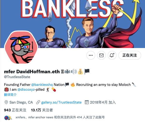 Bankless 联合创始人 David Hoffman,现在连名字都带上 mfer 了。