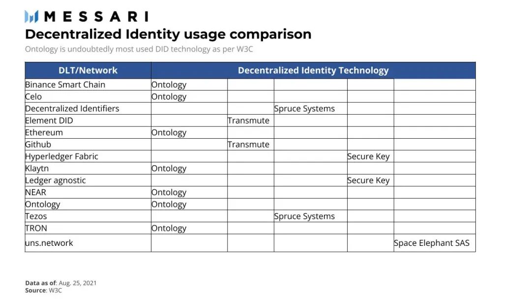 到目前为止,已经有超过7个区块链项目开始使用Ontology DID解决方案,而且客户似乎只会增长。还有其他项目,如Civic、Transmute、Spruce Systems Inc.和Secure Key Offers DID解决方案,然而没有一个项目拥有像Ontology这样多的基于区块链的客户。