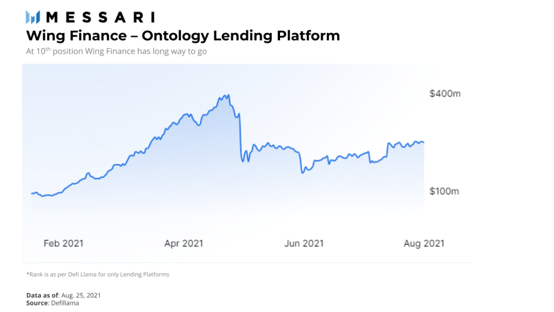 ONT ID 框架还包括 OScore。OScore 协议是一个独立的链上信誉评分,使用链上数据生成,包括用户的 ONT ID、资产和凭证。OScore 只能访问存储在链上的用户数据,因此它尊重用户的隐私和匿名性。随着用户向去中心化网络添加更多数据,实体的 OScore 会增加或减少。OScore较高的用户在 Wing Finance(Ontology基于信用的 DeFi 平台)等平台上获得更高的贷款利率。Wing Finance 的总价值锁定(TVL)在今年5月达到4亿美元的峰值,但与其他 DeFi 借贷平台相比,它还有很长的路要走。