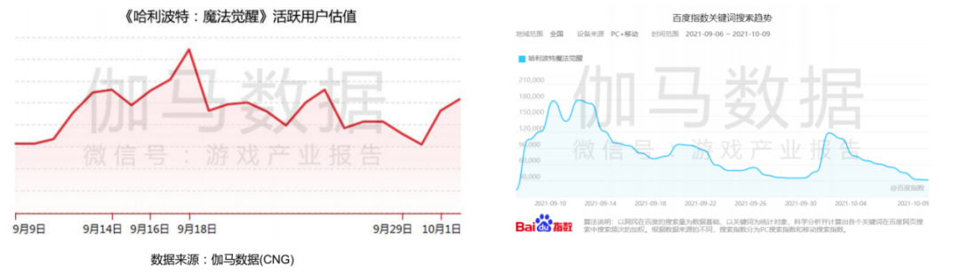 根据伽马数据的运营分析,《哈利波特:魔法觉醒》在9月9日上线后,依靠IP影响力吸引了大量用户。随着10月1日版本上线后,拼图寻宝玩法和国庆彩蛋探索玩法进一步刺激了玩家的活跃度,在玩家频繁在各种社交平台进行互动的同时,游戏的热度得到了进一步的提升。故在下一个版本到来之前,游戏热度与活动更新力度几乎绑定在了一起。
