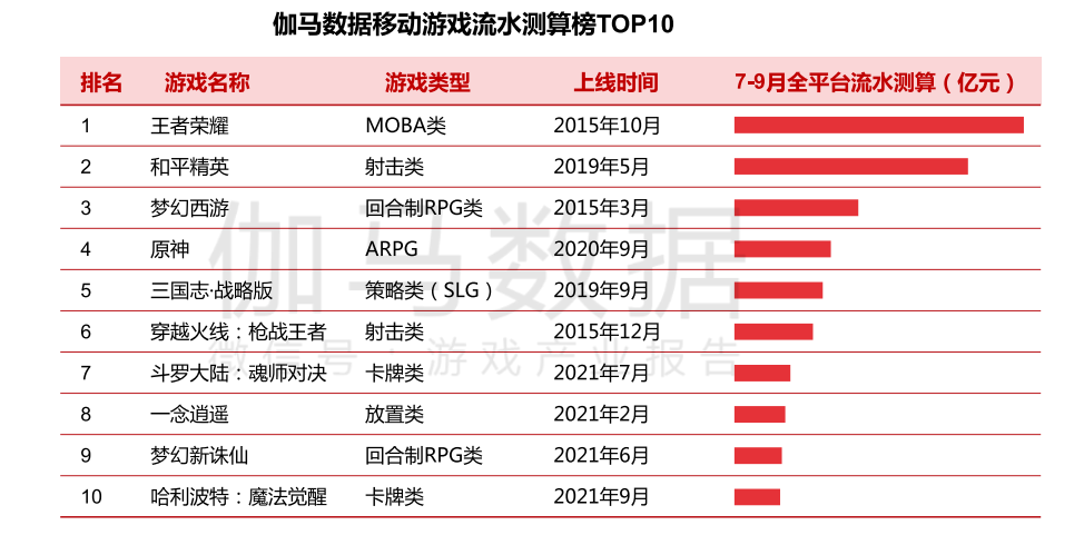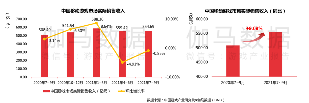 近日,伽马数据发布了2021年7月-9月的移动游戏市场报告。Q3季度中国移动游戏市场实际销售收入为554.69亿元,环比下滑0.85%,同比增长9.09%。根据报告显示,环比下滑的原因一方面是因为长线产品《王者荣耀》等流水有所下滑,而另一方面,新上线的产品《航海王热血航线》流水回落,不足以弥补下滑差距。
