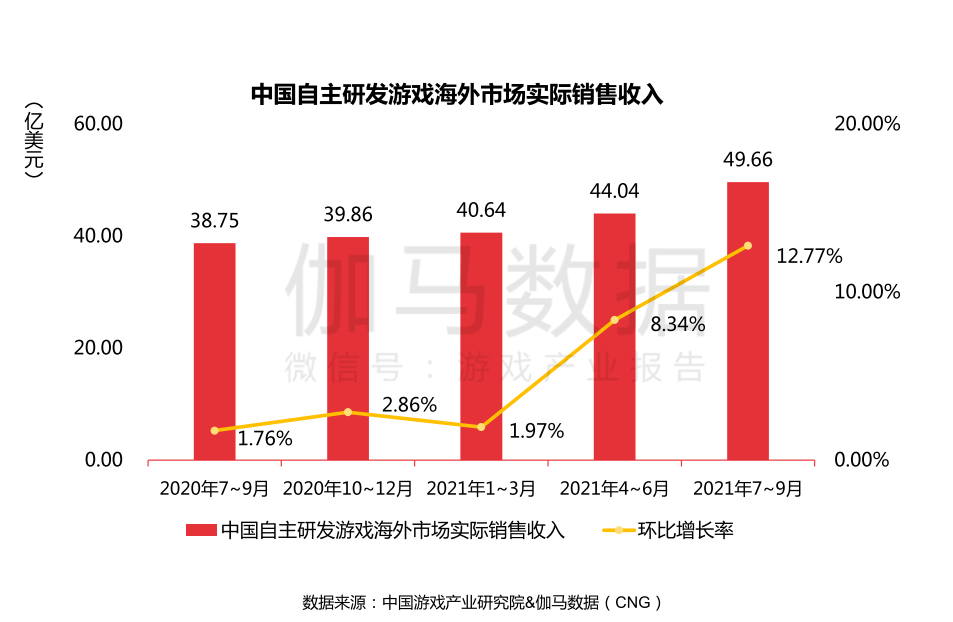 海外市场方面,Q3季度中国自主研发的游戏实际销售收入为49.66亿美元,环比增长12.77%。《原神》《三国志:战略版》《Puzzles & Survival》的产品表现亮眼,《天涯明月刀》《天地劫:幽城再临》等产品的上线带来了一定的增量。