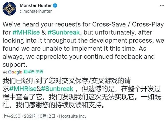 3、不成,《怪物猎人:崛起》确认不支持跨平台