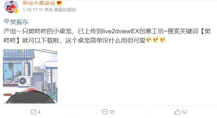 除了二次元,Live2DViewerEX更普遍的用法,其实还是满足粉丝天天和偶像相伴的心愿。由于技术精良,由Live2D生成的桌宠相较其它软件的要更加精美且生动,可以说是全保真级别的桌面追星(老公/老婆)体验。