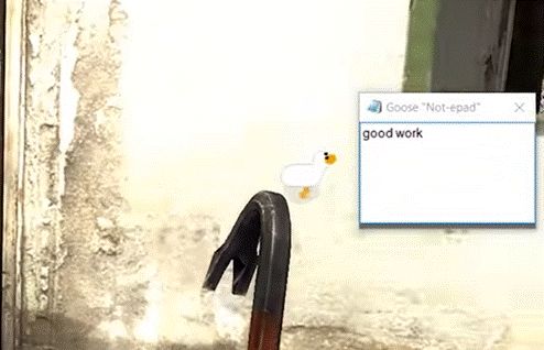 这只在桌面上生成的大鹅,平时会带着泥脚印在桌面上走来走去,弄得屏幕一片污秽。虽然你没有办法抚摸、喂食,或者是讨好它,只能由着它在你的屏幕上肆意往来。但它如果兴致到了,就会从桌面外给你拖来几个弹窗。