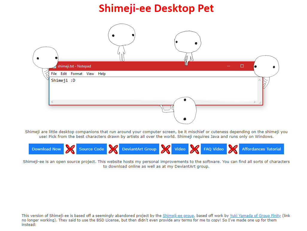 在母公司消失后,软件一度停止更新。Github上的网友首先发现了这一点,于是这伙儿程序员开始帮着Shimeji做优化、改bug,不断添加新的功能。直到有人看不下去,于是自己帮Shimeji又建了个网站:Shimeji-ee。