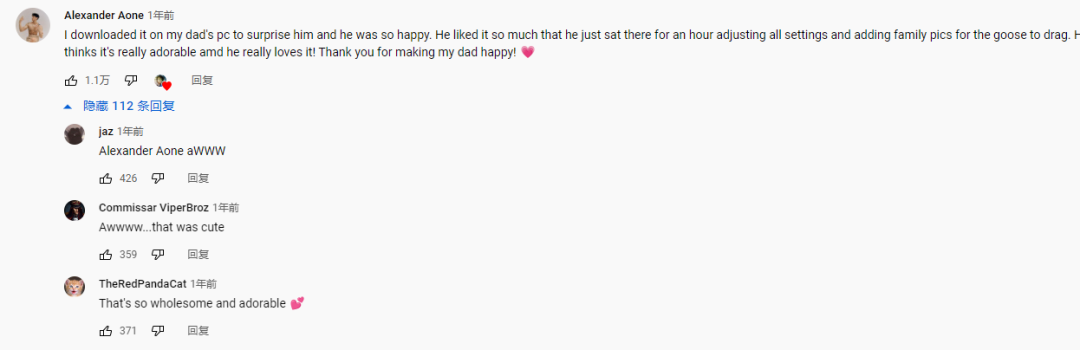 也因此,这条视频在油管上喜提了200万的播放量,许多人在评论区里表达了自己的喜爱。如果你去各个平台搜索“桌面宠物”,很有可能就会有网友给你推荐这个桌宠。