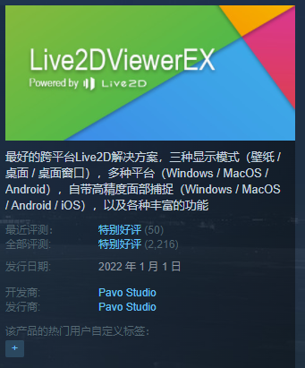 这里讲到的是在Steam上一款叫Live2DViewerEX的软件。它基于Live2D技术研发,通过各种图层叠加,使平面角色产生动作,造成一种“伪3D”的感觉。简而言之,就是可以让原先不太能动的二次元人物们动起来。