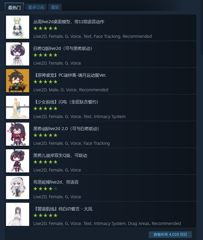 虽然这款软件上线于2022年的1月1日,但在17年便已经抢先体验发行了。刚开始推出时,Live2DViewerEX是作为生产工具为用户服务的。但既然沾到二次元这块了,于是它也开始朝着意向不到的地方发展。由于各大厂商推出的游戏中经常带着原角色的Live2D文件,再碰撞上一大批想要把自家二次元伴侣搬上桌面的玩家,因此就造成了一种众角色纷纷“下海”的场面。
