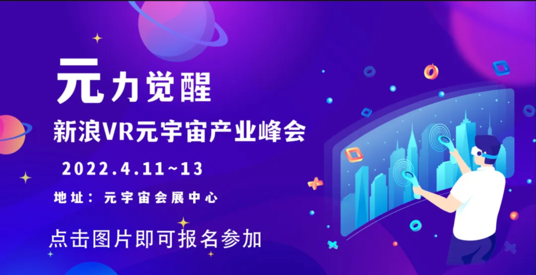 新浪VR在元宇宙中开会了(附获奖名单)|腾讯XR部门招聘,元宇宙人才需求旺盛|麦当劳也来掺和, 要做“元宇宙”的金拱门?|这家公司想制作不一样的元宇宙内容?|专访央视AR团队:当XR技术走进冬奥会|三星837X元宇宙活动:败的一塌涂地但也成了|“中国VR 50强”企业名单公布(附全名单)产业链分布趋向均衡|2021年财报发布后,元宇宙扛把子Meta有点崩|从入门到放弃:扎克伯格退出了币圈|苹果再次被Meta挖墙脚,造车和AR眼镜都挺难|致力元宇宙!Meta开发世界最快的AI超级计算机|“虚拟成真”小派科技媒体会举行 ——高性能VR是通向元宇宙的大门|新浪VR与元透社达成战略合作伙伴关系|以内容为王、服务开发者,是我们坚定不移的信念——梦想绽放COO孙峰|微软687亿美金收购动视暴雪 | CEO纳德拉:为元宇宙而来!|最新消息:苹果AR眼镜不会面向C端?|翠鸟视觉在视力障碍辅助视觉方向取得突破性科技进展|FTC关注Meta垄断元宇宙:小札这次为自己叫屈|微软与Magic Leap比惨,AR行业春寒料峭|华人大佬加入Meta董事会,这盘棋究竟有多大?|在这款前VR游戏厂商开发的新作里 日本将美国纳入殖民地|元宇宙鼻祖《罗布乐思》国服已悄然关闭一个月了 |VR头显大卖,操作系统搁浅,Meta的垄断之路并不顺畅 |在元宇宙中挥别2021,腾讯落子虚拟演唱会 |