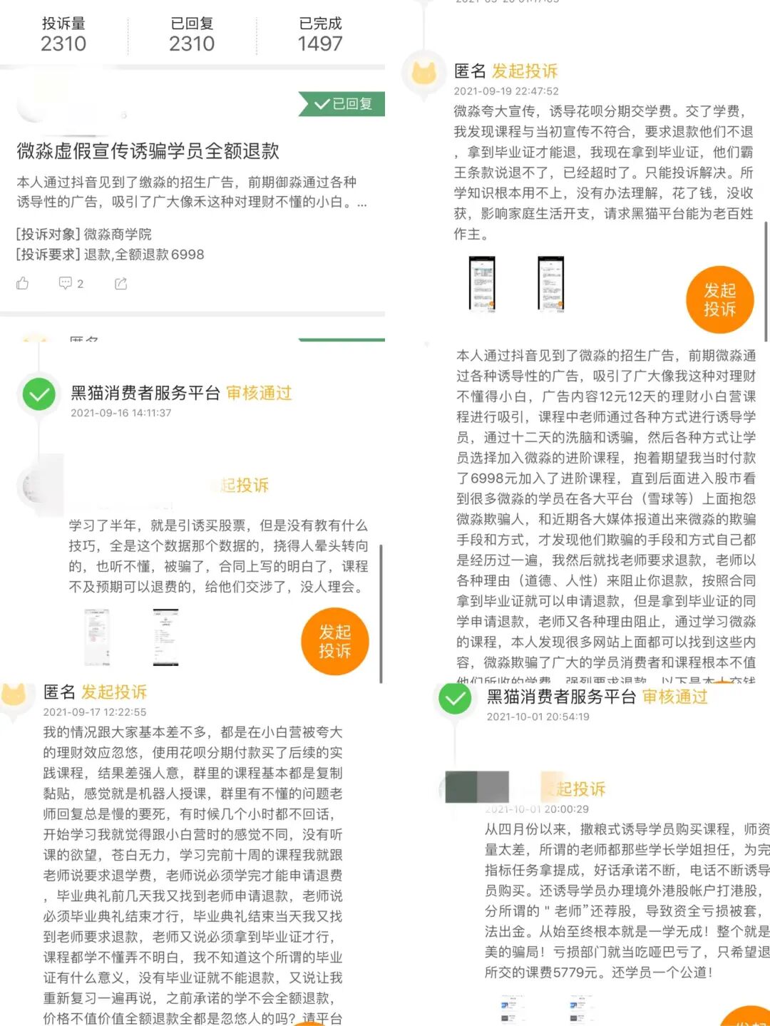 “快速实现财务自由的方法!普通人也可以做到”、“基金半年赚10万,做好这4点你也可以”、“一天赚1000,这个白捡钱的机会了解一下”……在财商教育的宣传中,赚钱方法千千万,不来你就亏了。在这种煽动下,很多小白奔着财务自由的目标报了课程。深燃通过某大V的文章推荐,加入了一个0元财商教育小白训练营。107人的微信群里,有自称班主任、学长、学姐的工作人员轮番介绍机构资质、监督学员打卡、每日讲解理论知识、晒学员收益、分享百万富翁成长史。“何以打败通货膨胀,唯有理财”。一段段深入浅出的故事,一碗碗精心炮制的鸡汤,群友们群情激奋,齐刷刷打出:“我要做好准备迎接人生第一个100万”、“月入过万,一起躺赚”。深燃注意到,该群里提到相关的敏感词都做了处理,比如li财、gu票、ji金。另外,中间讲到一些略有深度的内容时,会指出提升班将详细讲,暗示学员报高级别的课程才能进一步学习。到第一阶段接近尾声时,深燃收到了一对一的“班主任”私信,称“下一个阶段就是实操课了,里面有基金初、中、高级的课程,还有保险、港股打新、股票课程,通过小白营报名是4.5折,3596元,官网是原价不打折,还加送一年的会员,现在超级划算哦。”这些机构的普遍做法是,先拿引流的产品吸引用户进群,讲授一些理财的基础知识,之后用各种电话、微信消息推销,用大幅度优惠诱导,辅以学员赚钱案例,如果用户称没钱,还能用花呗、京东白条等支付。深燃比对发现,市面上几家主要财商教育机构同质化现象明显。首先,课程设置大同小异,均分为基础版的小白课程、升级版课程以及实操训练;课程内容也很雷同,《小狗钱钱》、《穷爸爸和富爸爸》是各家通用的入门读物;另外,各机构主要的盈利来源是卖课,有的会跟个别券商合作赚开户费,推荐保险产品。最终的效果因人而异,但社交平台上的用户投诉不在少数。截至10月9日,黑猫投诉上,关于微淼商学院的投诉有2310个,主要反馈的是虚假宣传、诱骗学员、退款难,启牛商学院投诉量1111个,投诉内容也是诱导报课,要求退费。而且,也有报道显示,早在2021年上半年,多个财商教育平台就因存在虚假宣传、诱导投资等问题被监管部门约谈。至于动辄几千元的学费到底值不值,刘卿认为,课程本身不值如此高的单价,但没有高单价,维持不了这些机构的商业模式。“今年一个用户的获取成本已经涨到了320元,成功转化一个学员,班主任的提成大约是1500元,再加上课程、服务人员的成本,定价在3000元以下很难做这个生意,除非有像吴晓波这样自带流量的IP。”多鲸资本合伙人姚玉飞分析,知识付费的需求一直存在,以前很多人炒股买理财产品,都是交了“学费”才慢慢入门的,“教人理财有一定正向作用,但是目前行业内的玩法太极端。”如今,整个财商教育行业正因为资质、经营规范、夸大宣传等问题,遭受前所未有的挑战。甚至不少机构在经营过程中制造焦虑,鼓吹学财商才能财务自由,不懂理财永远都是打工人,借此“割韭菜”。![]()