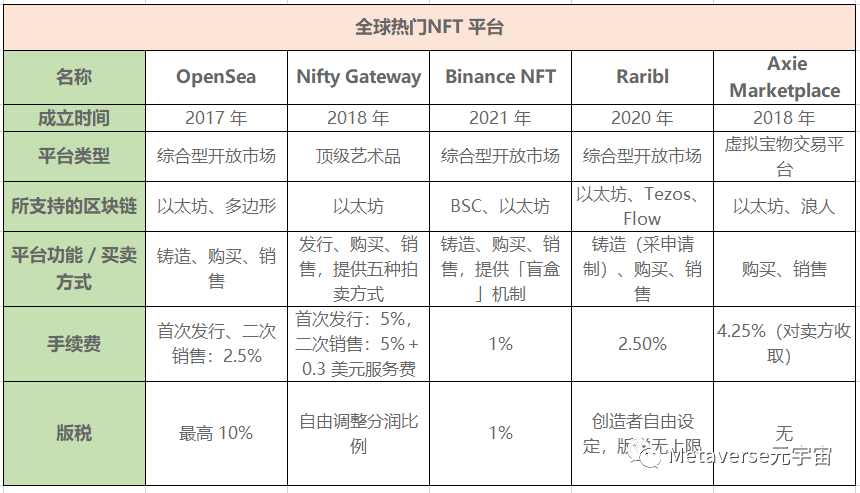 以下来分别介绍国外五大热门NFT 平台,包含:OpenSea、Nifty Gateway、Binance NFT、Rarible 以及Axie Marketplace。