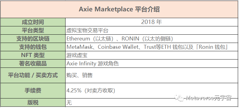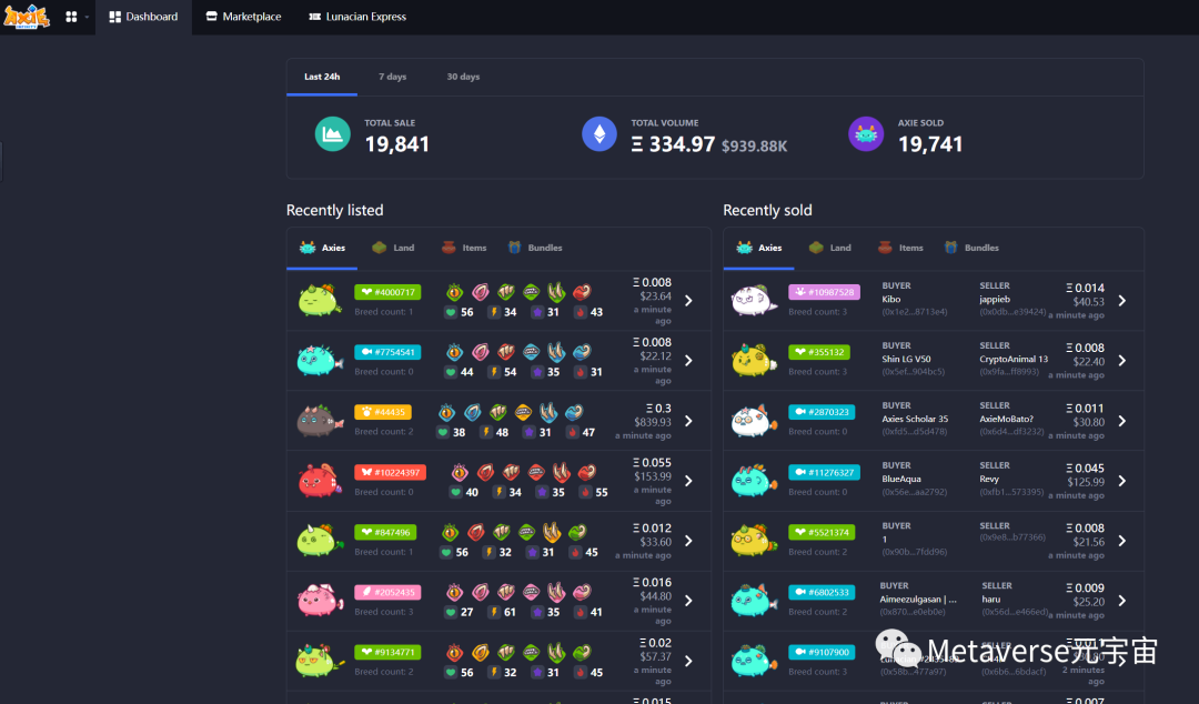 Axie Marketplace 是专职于交易虚拟宝物的NFT 平台,乍看之下可能有点陌生,但只要讲到Axie Infinity 这款区块链游戏,就一定会有许多人听过,而Axie Marketplace 即是用来交易Axie Infinity 游戏角色的NFT 平台(换句话说,可以把游戏角色视为NFT 商品)。Axie Infinity 成立于2018 年,为目前全球最火红的区块链游戏,玩家可在游戏中饲养精灵宠物(类似于宝可梦),而这些精灵宠物能用于打怪练等,以及玩家之间PK 对战。等到精灵宠物到达一定等级,或是孵化出稀有角色,玩家就可以用较好的价格售出,亦即目前最火热的「Play-to-Earn(边玩游戏边赚钱)」区块链模式。