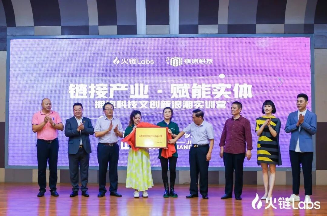 基于此,在本次实训营授课现场,中国国际商会区块链创新服务产业委员会、火链Labs、链道科技(山东)有限公司、链大教育咨询(成都)有限公司共同发起成立了“山东数字赋能产业协会(筹)”,山东省经济知识促进会林存吉会长,山东省江苏企业商会武茂松书记和曹德生秘书长,火链Labs总经理袁瑞娟,中国国际商会区块链创新服务产业委员会专家委员、链道科技总裁李亚南等出席了成立仪式,众学员共同见证了这一重要时刻。
