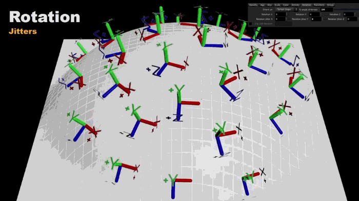 这些植被分布还需要有各自的旋转,默认设置下,他们是按照地形坡度进行旋转的。