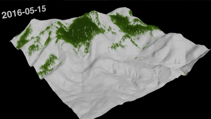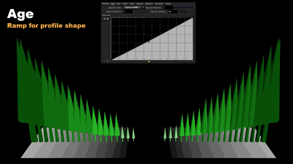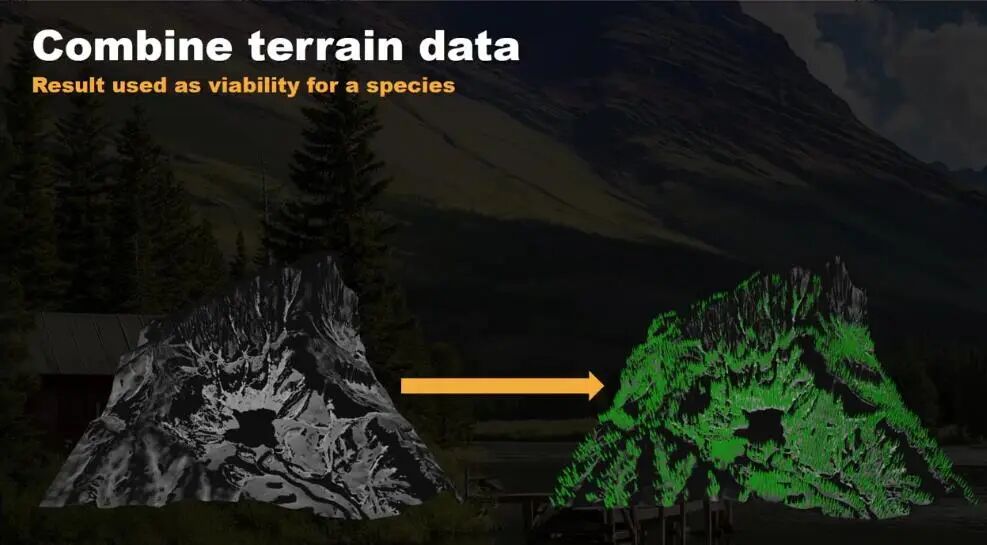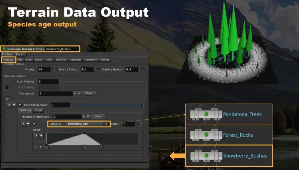 回到黄松树案例,我们还可以加入年龄数据,这就可以让我们根据树木年龄增加新的元素,如果你是生活在这样的环境中,就可以发现有些自然现象也出现在了游戏里,而不只是被阴影挡住。