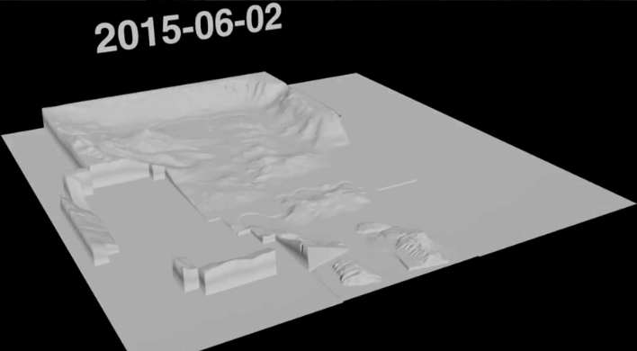 在《孤岛惊魂5》的研发过程中,我们遇到的一个挑战是持续变化中的地形,通过动图我们可以看到地形在两年半之内的多次变化,所以我们的挑战是迭代如此频繁的情况下,如何管理这么多的内容。