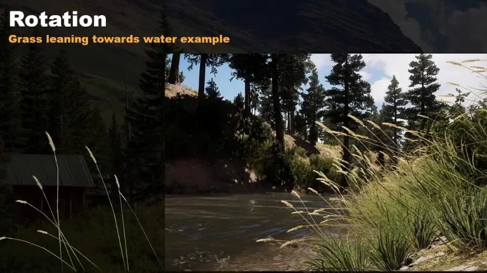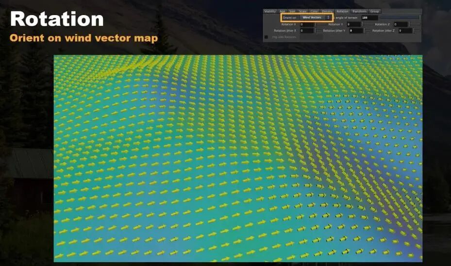 我们的植被旋转可以基于斜坡角度进行水平旋转,这是通过百分比控制的。