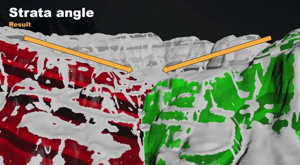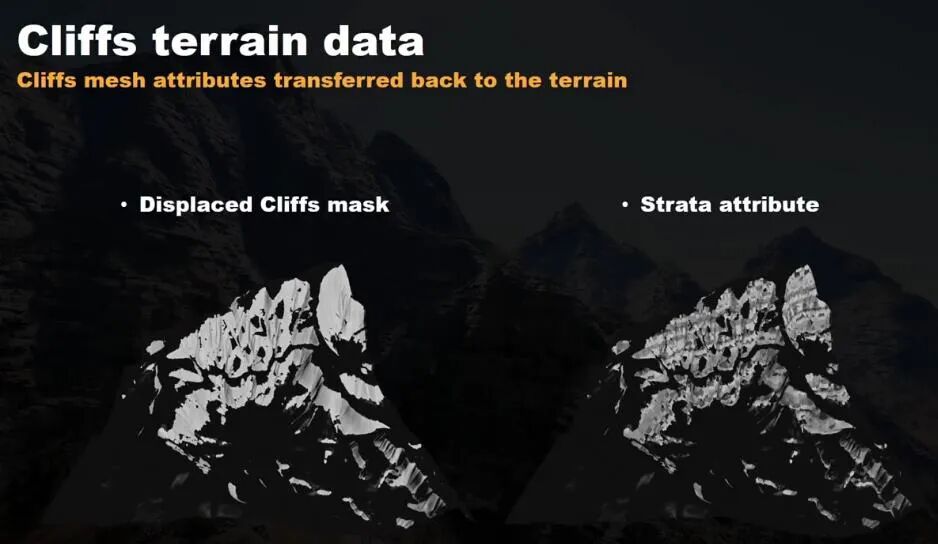 出于这个原因,我们使用了最后的工具Cliff mesh,将数据转回地形之上,替换cliff mask和strata attribute。
