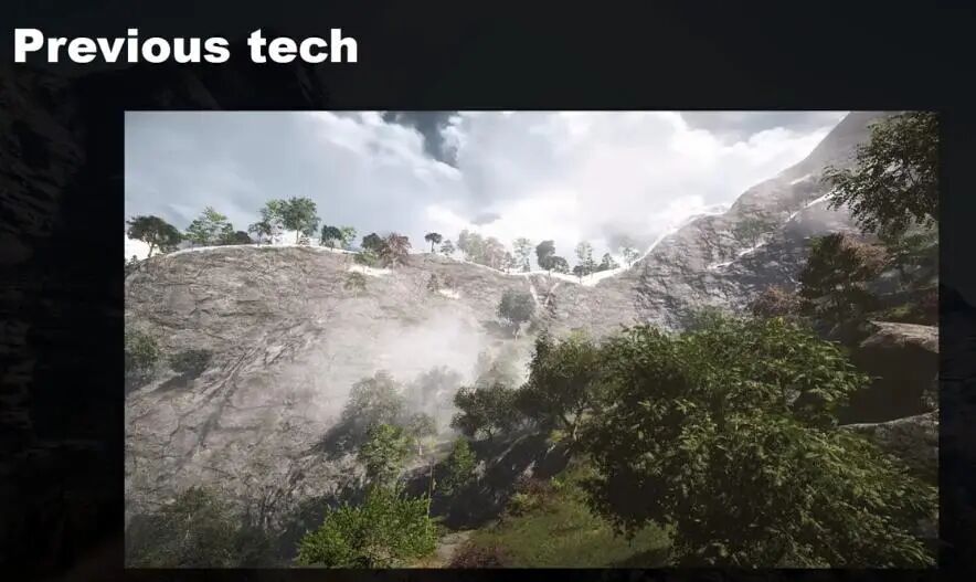 但在《孤岛惊魂5》项目上,我们要做更大的项目,让悬崖有更深层次的表现,这也是我们为之研发工具的原因。