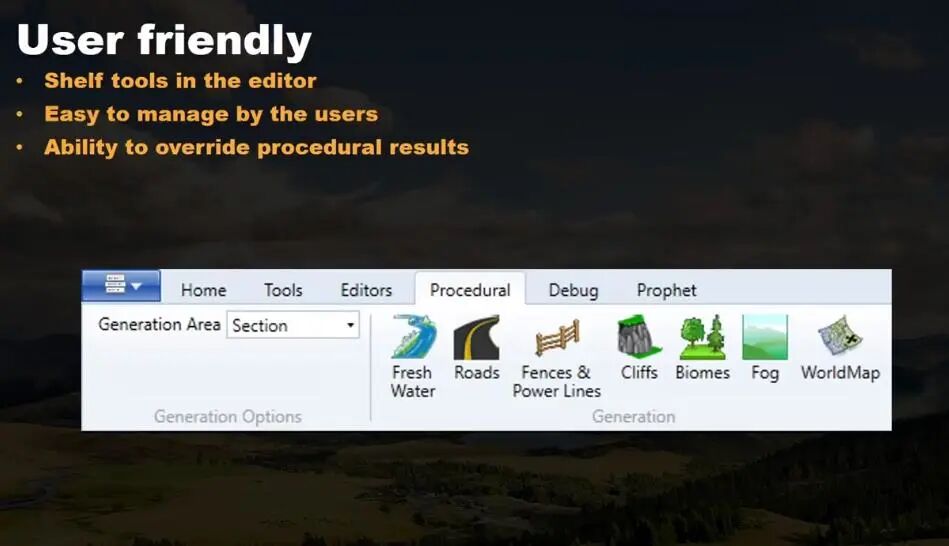 聆听用户的意见,有些时候,他们可能更喜欢控制UI,而不是处理过程,比如我们的淡水工具,你可以自动生成河流,也可以让美术师手动设计,但大多数时候可能都用不到手动功能。