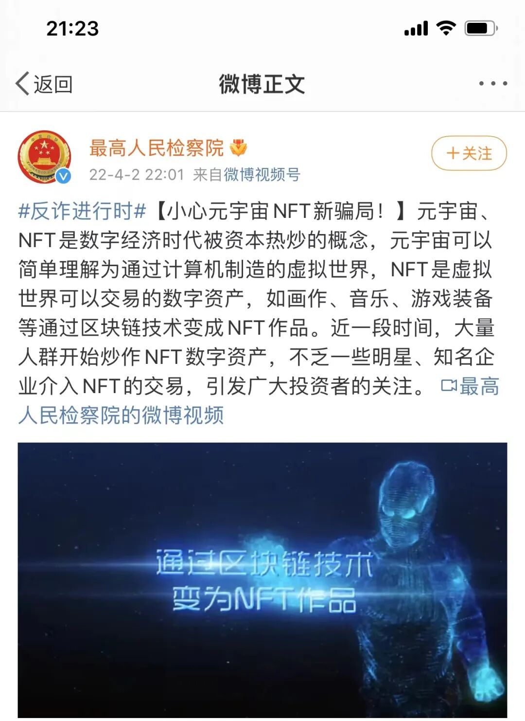 从现实来看,在技术层面上,NFT等虚拟资产被黑客盗取是可以实现的,手段包括钓鱼陷阱、过度包装诈骗、社交媒体诈骗、赠品或空投骗局等。4月2日22:01,最高人民检察院官方微博发布“小心元宇宙NFT新骗局”的反诈视频。视频中梳理了NFT数字藏品中的骗局,提醒大家擦亮眼睛,小心被骗。![]()