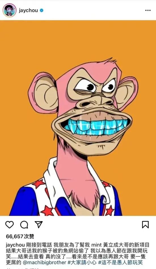 4月1日,周杰伦在Ins上发文称,被电话告知自己此前获赠的BAYC #3738 NFT 被钓鱼网站偷了,他以为是愚人节的玩笑,没想到查看后发现真的没了。并在文后附上“大家请小心”和“这不是愚人节玩笑”的标签。据悉,周杰伦被盗NFT属于当下圈内最火项目之一无聊猿游艇俱乐部(BAYC),是周杰伦于今年1月从歌手黄立成处获赠。说出来可能会让你惊掉下巴,因为骗子用的是最简单、最古老的诈骗手段——钓鱼网站。首先,钓鱼网站做了一个跟官网很像的网页,给用户发短信,同时附上链接,以账户安全、送礼等理由,诱导用户点击假的链接,输入自己的密码。一说钓鱼网站,很多人可能会“哼”一声:“这么老套的诈骗形式吗?”没错,就是这么古老的诈骗形式,一个已经被很多电信诈骗分子淘汰的方式,因为太容易被发现了。用户自己输入密码之后,骗子就知道密码了,骗子会立刻登录真实的账户把NFT或者钱转走。一般钱多的用户,比如周董这个级别的不管是银行卡还是链上钱包,就算密码泄露了,骗子在异地异常IP登录了账户,都会给绑定的手机号或者邮箱账户发确认短信,正常来说用户都能意识到可能遇上钓鱼网站诈骗了,然后赶紧改密码。而这一次,圈内人认为,一定是周董过于自信或者太大意,并没有在第一时间判断出骗子的诈骗手法。