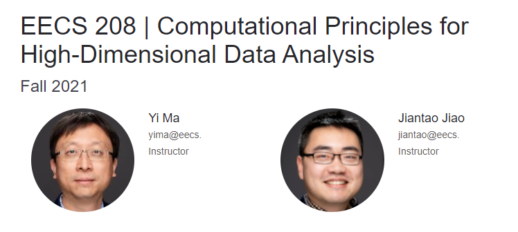 伯克利大学还因此开设了高维数据计算原理的新研究生课EECS 208,在新书网站上也有课程的全部课件。