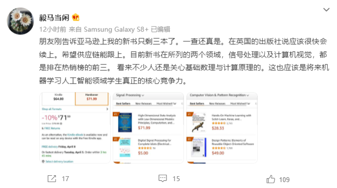 最近新书由剑桥大学出版社出版,在亚马逊上架,一经发售也是夺得了「信号处理」领域的best seller,在计算机视觉和模式识别也排进了前三。