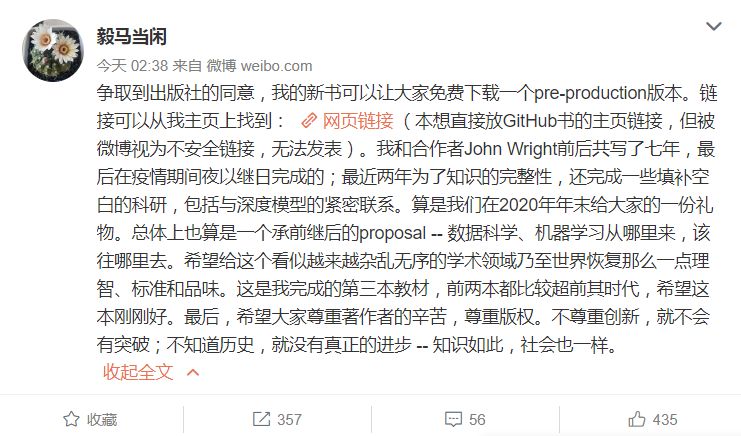 马毅教授表示,由于书中大部分都是理论,新书的畅销也表示不少人还是关心基础数理与计算原理的,这也应该是将来机器学习人工智能领域学生真正的核心竞争力。并且新书正在由机械工业出版社翻译中文版,争取明年能问世!